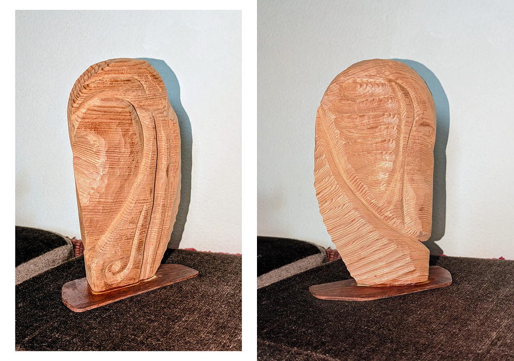 Untitled Sig.: 28/98, Origin: ? possibly juniper, height: 54cm Untitled Sig.: 29/98 Origin: oak, height: 61cm (A difficult peace with strong relationship to (my) heart disease) ![]() Untitled Sig.: 31/99, Origin: Milo Thespesia populnea (from Hawai'i, Metta's uncle), height: 34cm Untitled Sig.: 32/99, Origin: red sandalwood (from Kolkata, India), height: 7cm Heart Sig.: 33/99, Origin: soapstone, height: 26cm Maria Sig.: 34/00, Origin: ?, height: 64cm Untitled Sig.: 37/03, Origin: oak, height: 51cm